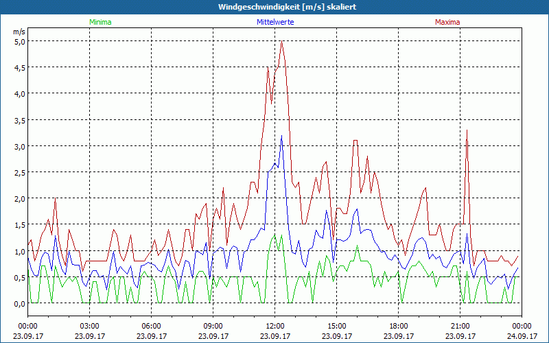 Tagesübersicht ▪ Windg. 0-20m/s ▪ Windg. skal. ▪ Windrichtung ▪ Windstatistik ▪ Windchill ▪ Temperatur skal. ▪ Luftdruck skal. ▪ Rel. Luftfeuchtigk. ▪ Temp,Druck,Feuchte ▪ Taupunkt skal. ▪ Datenliste  Wochenübersicht  Monatsübersicht  Jahresübersicht  Impressum  Hilfe? MessCom GmbH Website Drucken