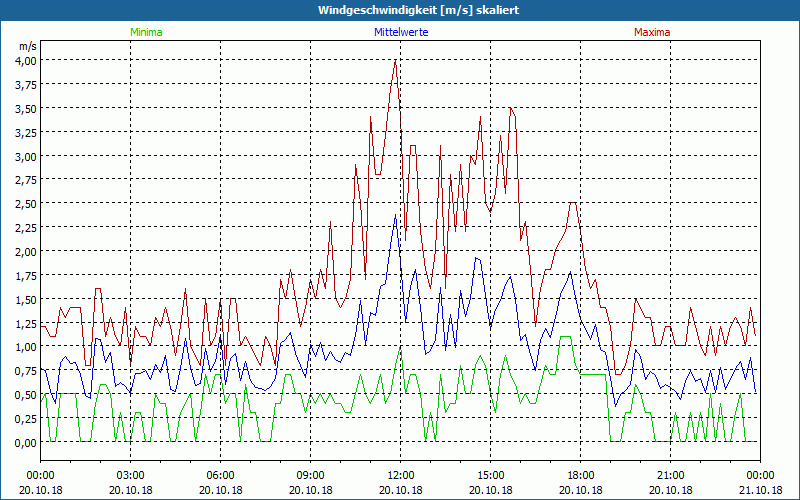 Tagesübersicht ▪ Windg. 0-20m/s ▪ Windg. skal. ▪ Windrichtung ▪ Windstatistik ▪ Windchill ▪ Temperatur skal. ▪ Luftdruck skal. ▪ Rel. Luftfeuchtigk. ▪ Temp,Druck,Feuchte ▪ Taupunkt skal. ▪ Datenliste  Wochenübersicht  Monatsübersicht  Jahresübersicht  Impressum  Hilfe? MessCom GmbH Website Drucken